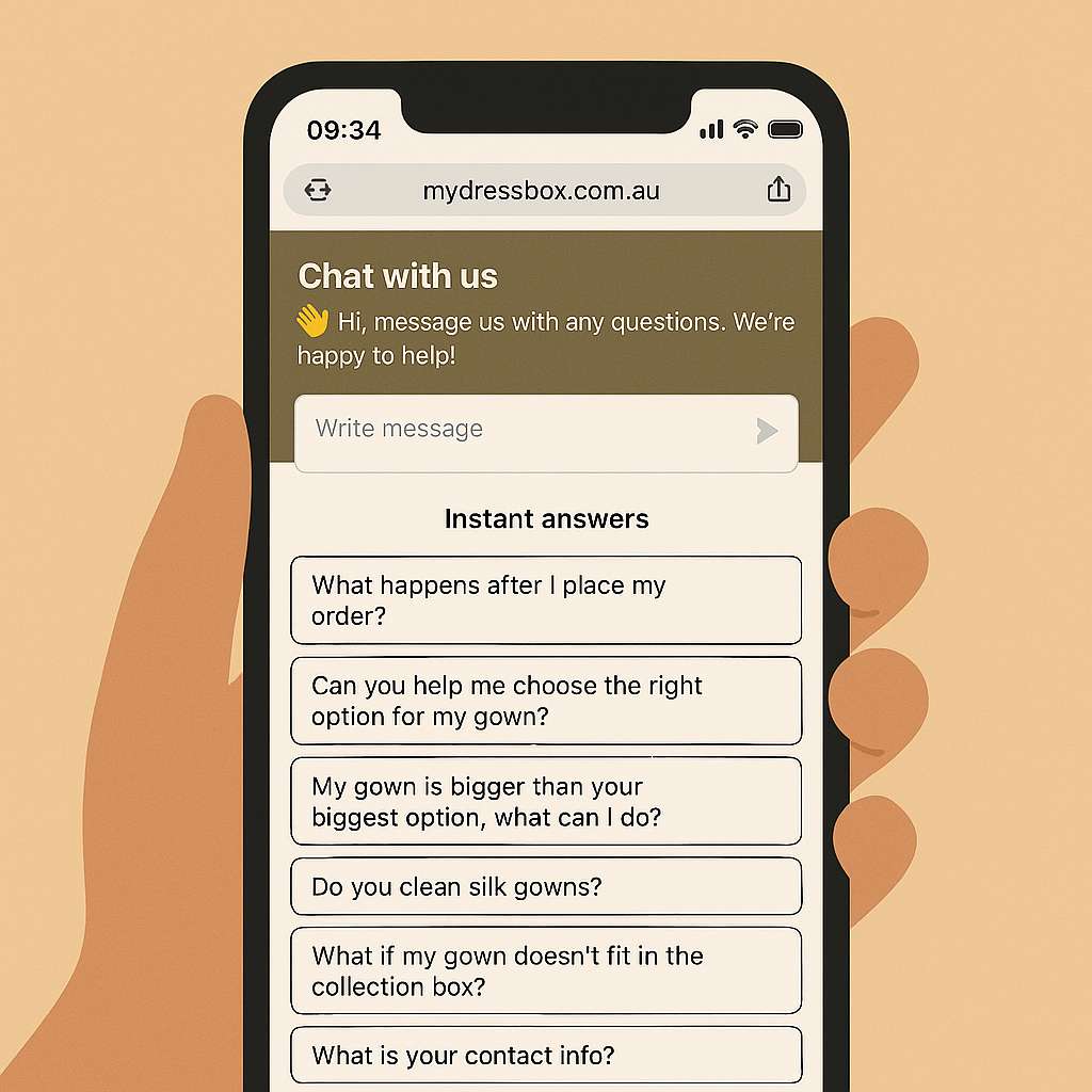 If you're a bride looking for help selecting a service, or an update on your gown clean, we recommend using the Live Chat function for the fastest response time.